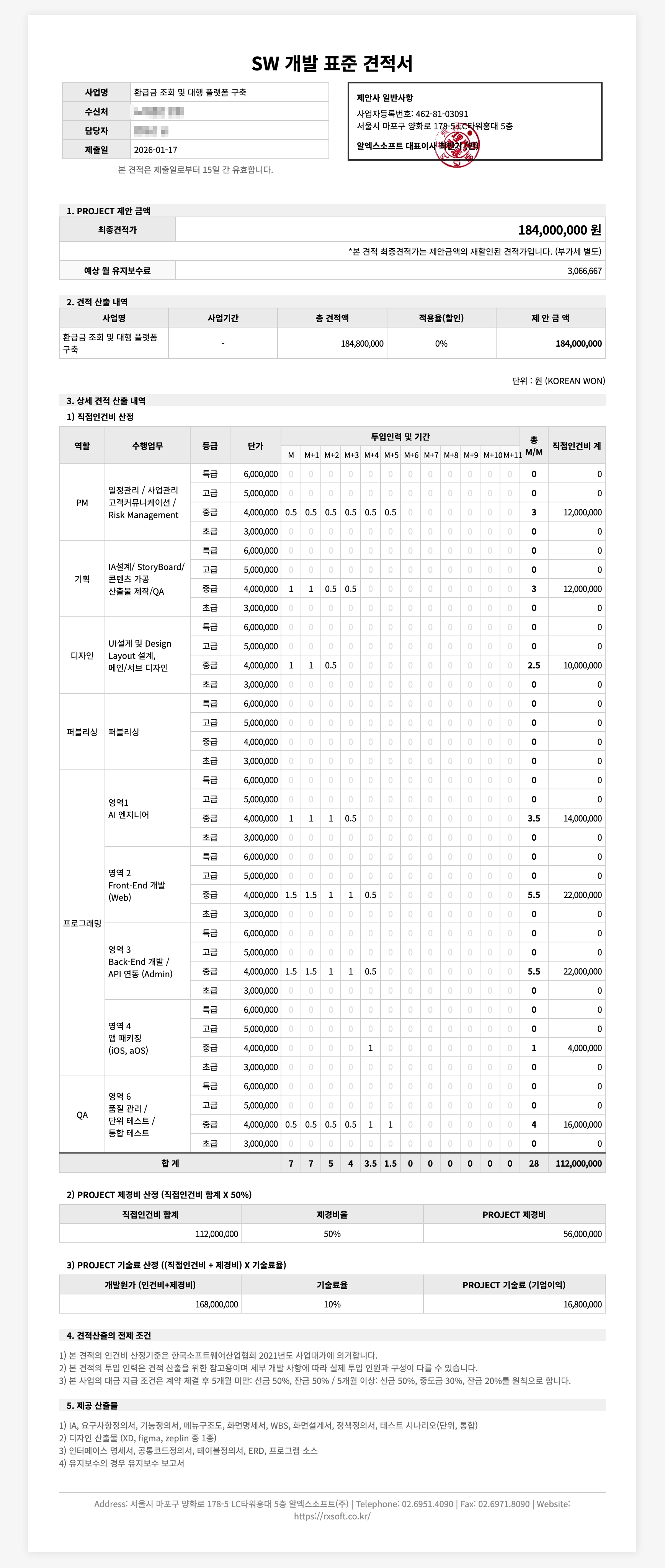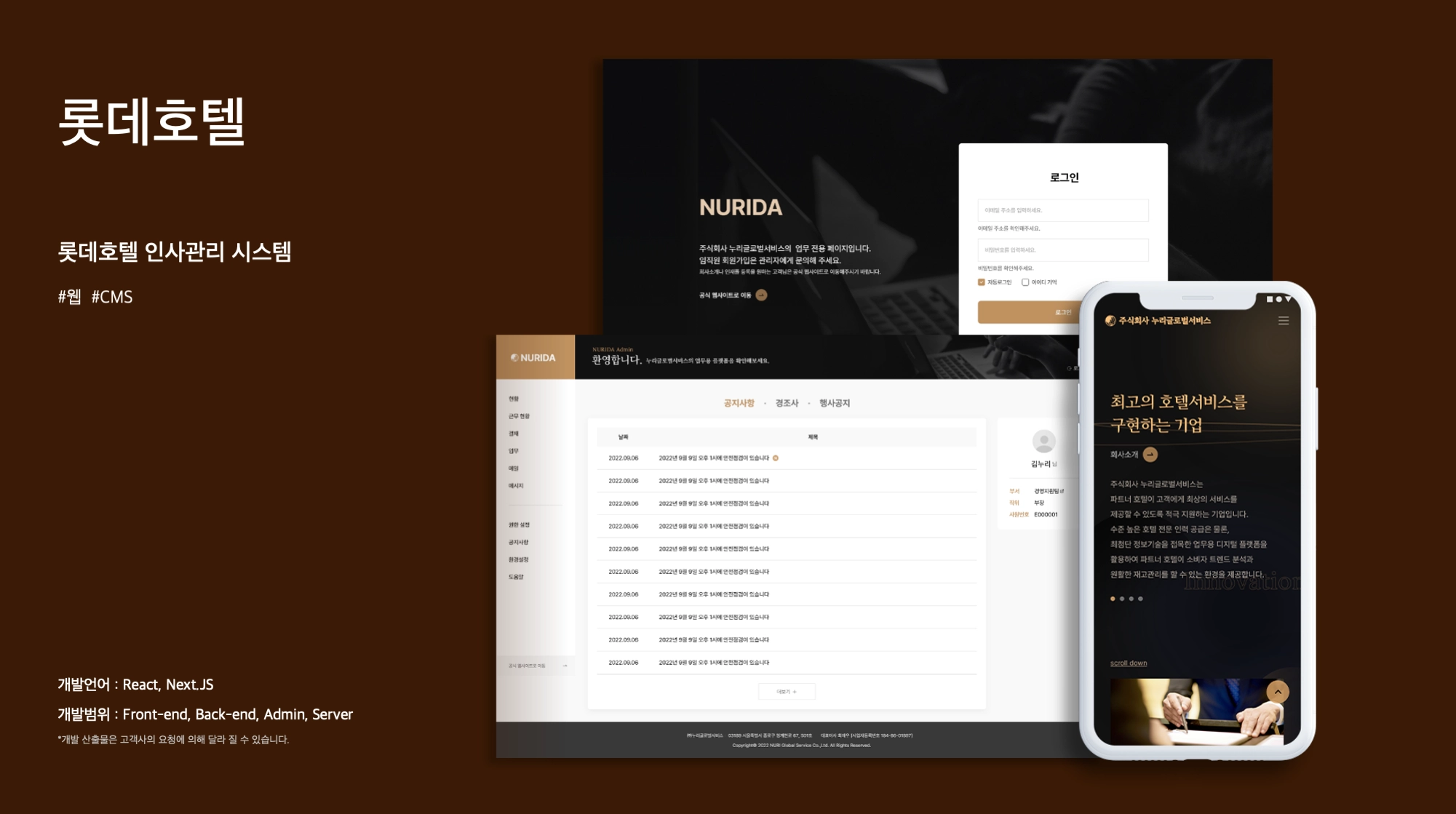 개발사를 선정할 때 가장 중요한 것은 개발사의 체력입니다. 개인 프리랜서가 최저 견적에 개발을 해준다고 했을 때 마음이 흔들리기 나름입니다. 그러나 곧 연락 두절이 되거나 유지보수를 할 수 없는 상황이 발생 할 수도 있습니다. 얼마나 오래동안 노하우를 축적해 왔는지 의뢰한 개발을 얼마나 체계적이고 세분화 된 팀이 개발을 하는지 매우 중요합니다. 우리는 20년 간의 노하우를 제공합니다.