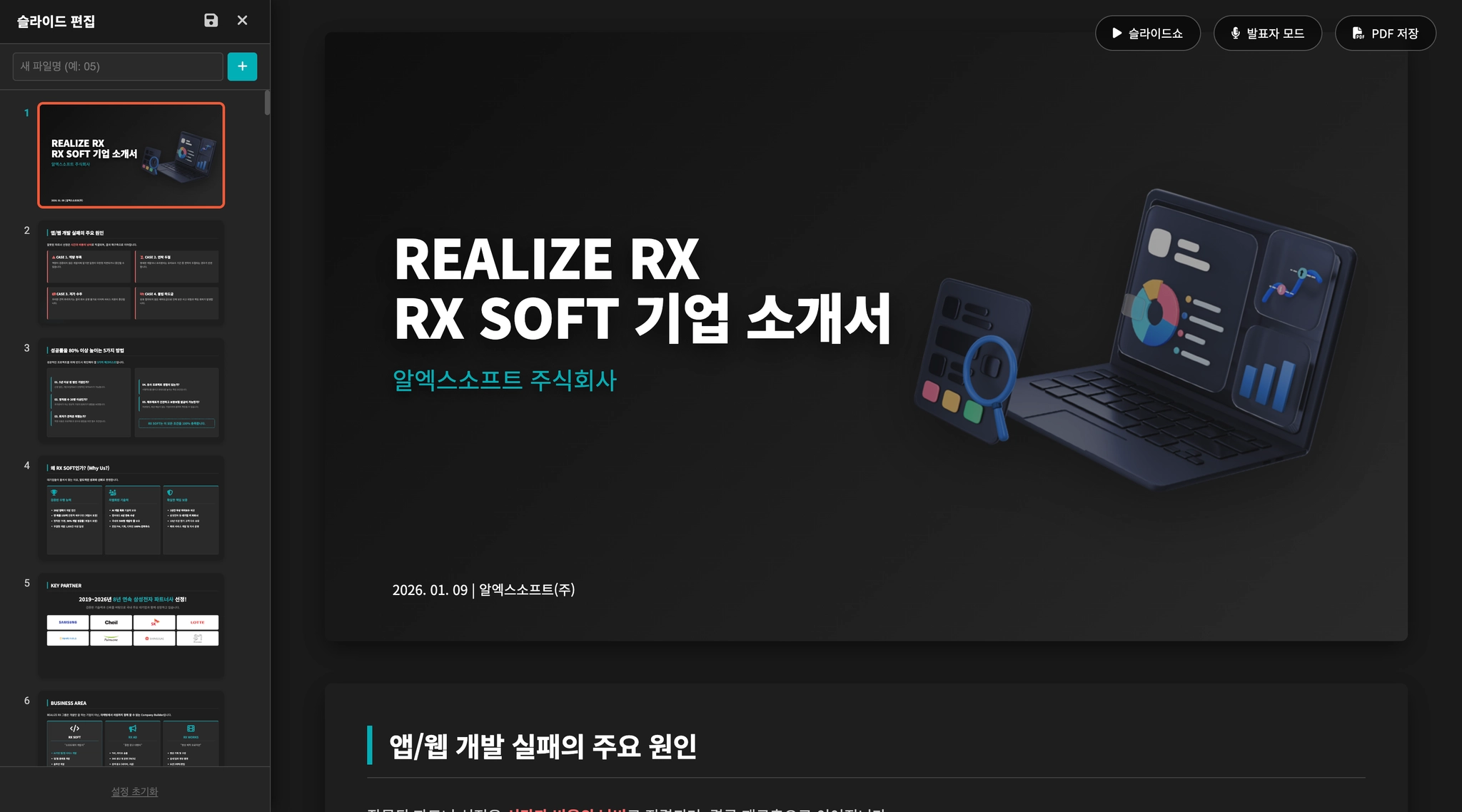 알엑스소프트는 2002년 어학 솔루션 개발을 시작하여 23년간 오로지 개발이라는 한 길만 걸어온 기업입니다. 국내에만 100명의 베테랑 개발자를 보유하고 있으며 대규모 개발의 성공적인 런칭을 위해 미국, 유럽, 아시아 등 글로벌 Full Stack 개발자 500명과 협업하여 가장 안정적이고 최신 기술을 적용합니다.