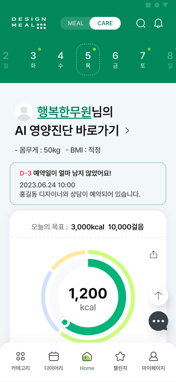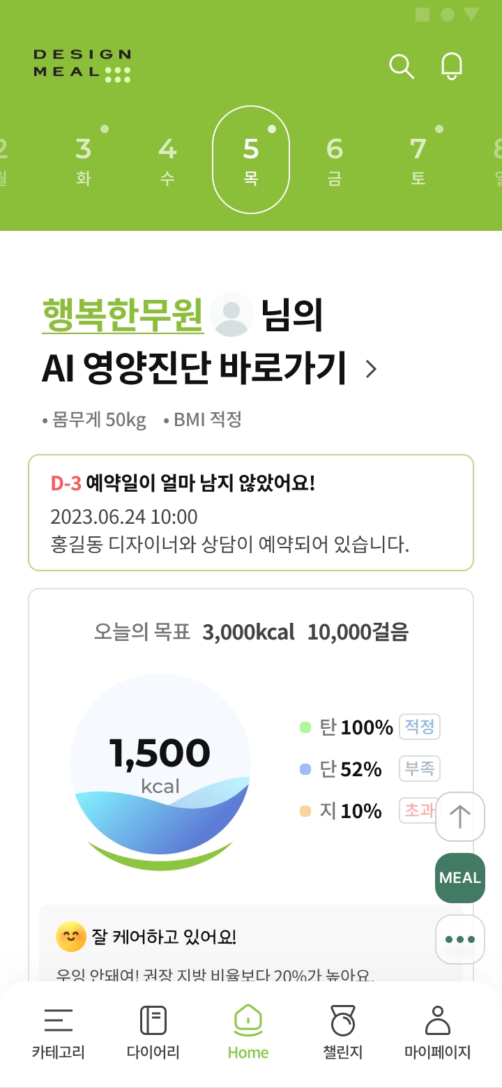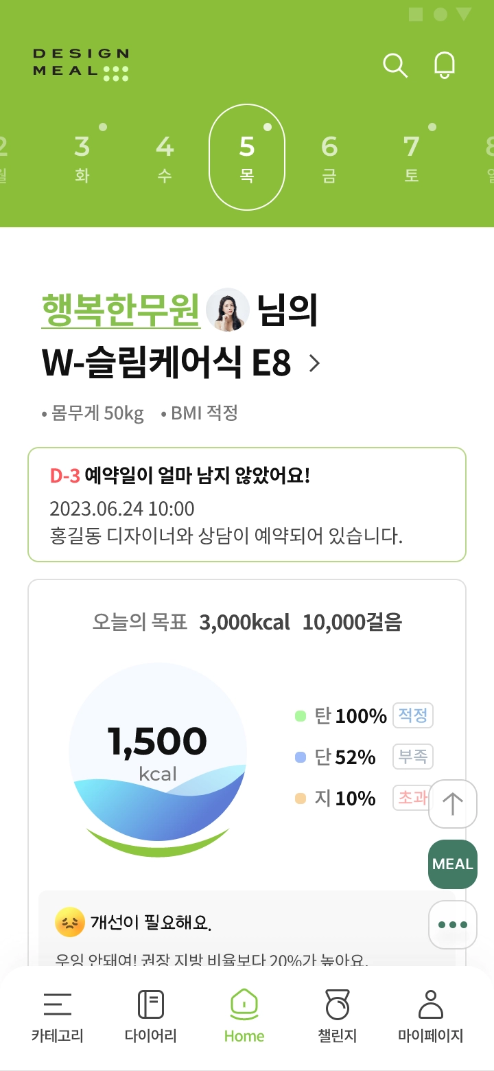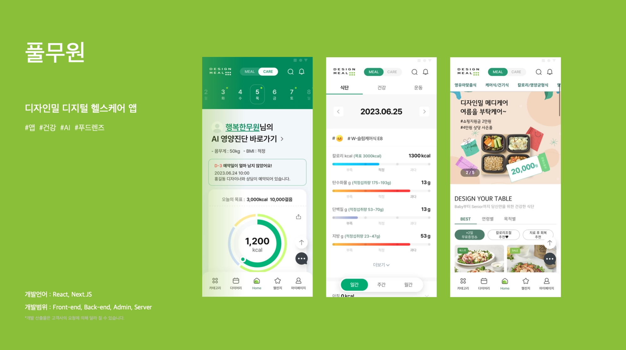 풀무원 디자인밀 헬스케어 플랫폼 1차 개발