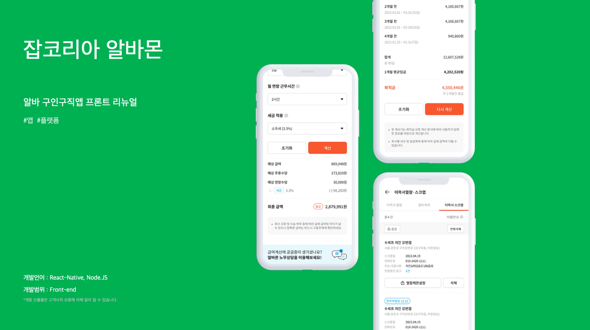 잡코리아 알바몬 프론트 리뉴얼 개발