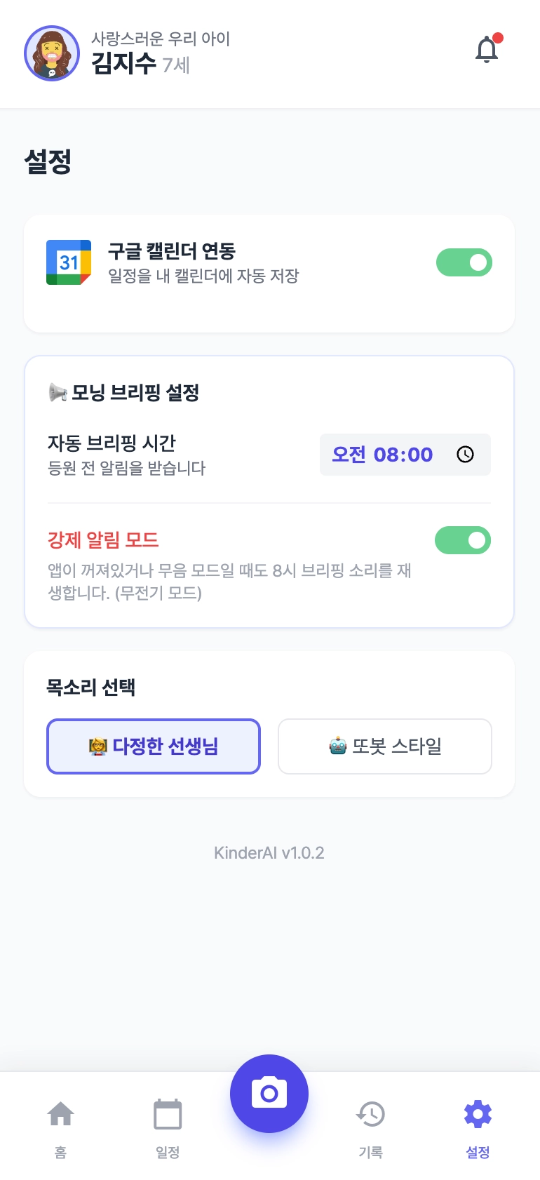 AI “유치원 알림장 종이 인식 및 모닝 브리핑”